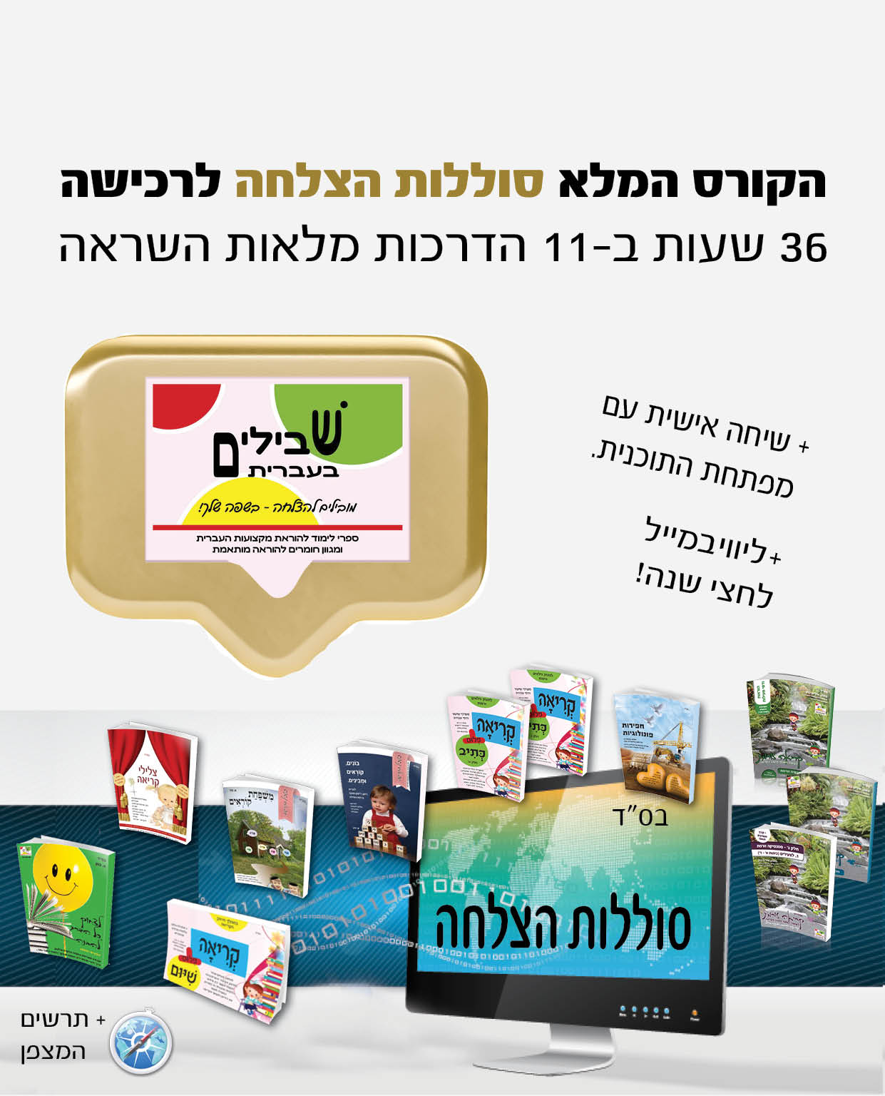 הקורס הדיגיטלי “סוללות הצלחה”, מבית “שבילים”, מאפשר למורות להוראה מתקנת וחנ”מ לשדרג את עבודתן בקידום תלמידים מתקשים בכל שלבי רכישת הקריאה ותיקונה, באמצעות הדרכה מקיפה ליישום פרקטי של 11 ערכות ממוקדות הניתנות לשימוש חוזר, ונותנות מענה מותאם למגוון גורמי קושי.